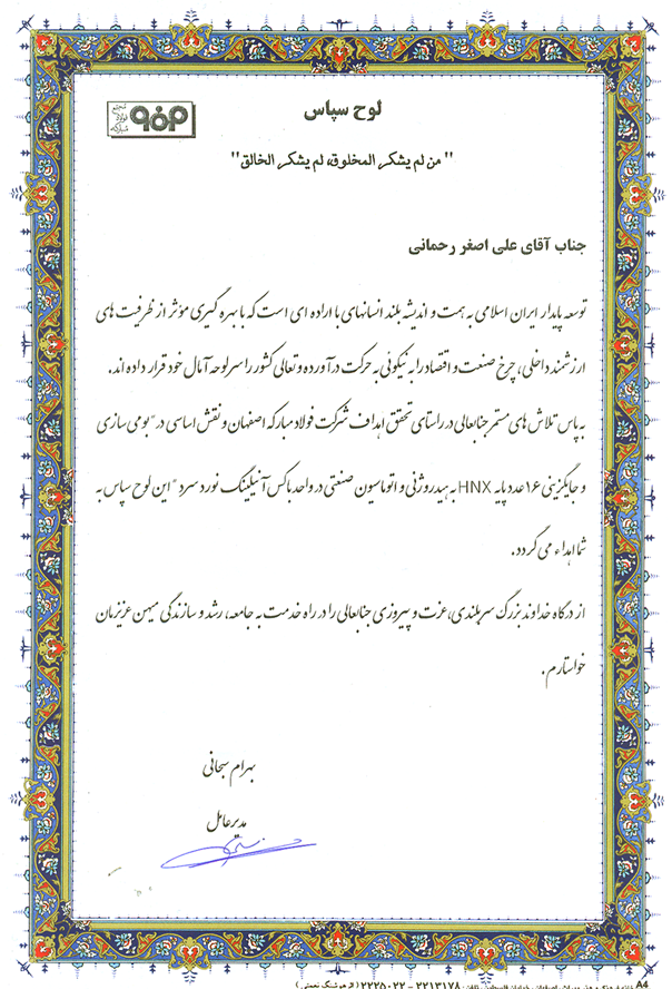 افتخار حضور و نقش آفرینی مجموعه دابوصنعت را به عنوان شرکت دانش بنیان در پروژه بومی سازی ساخت کوره باکس آنیلینگ نورد سرد شرکت فولاد مبارکه اصفهان که برای اولین بار توسط کارشناسان و متخصصان داخلی صورت گرفته و موجبات افتخار و بالندگی صنعت ملی را فراهم آورده است، تبریک عرض مینمائیم.